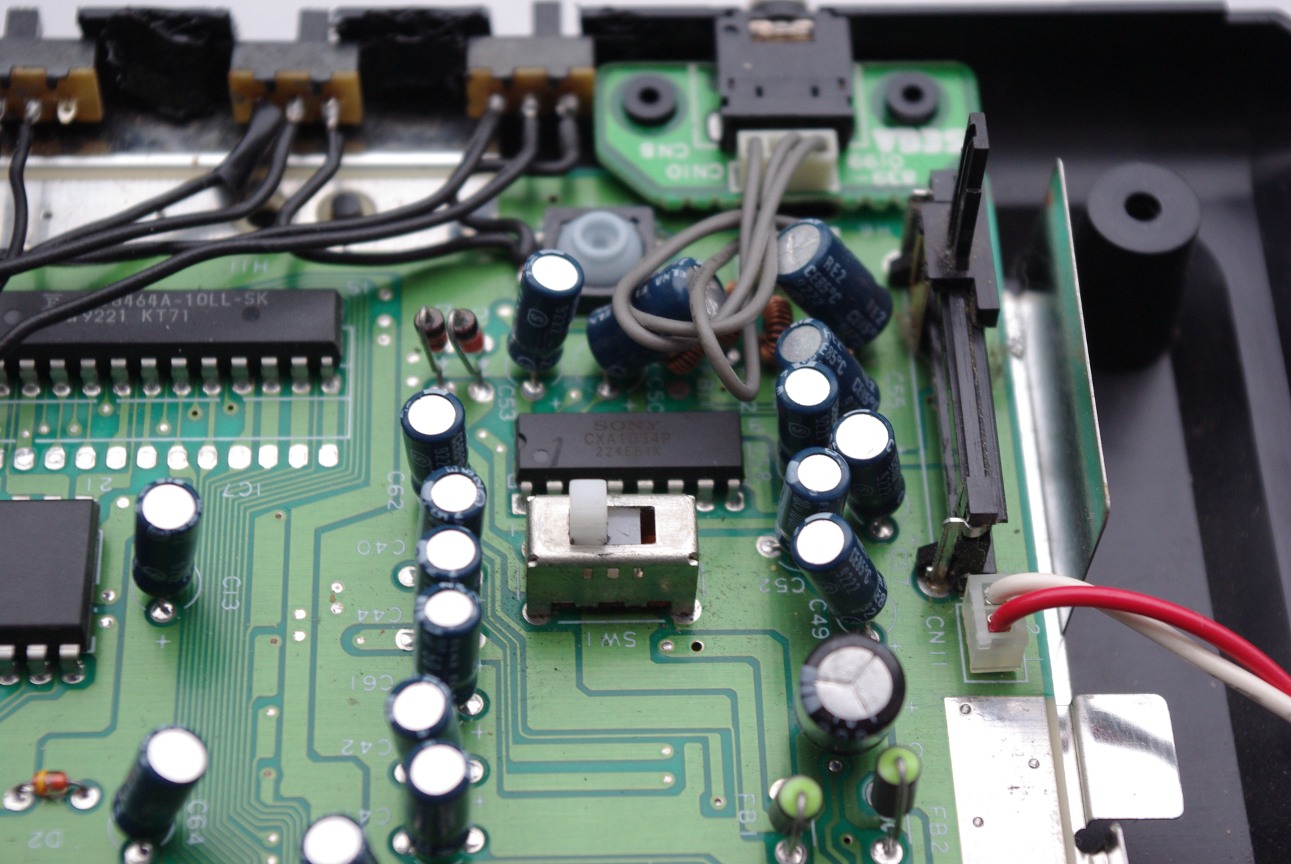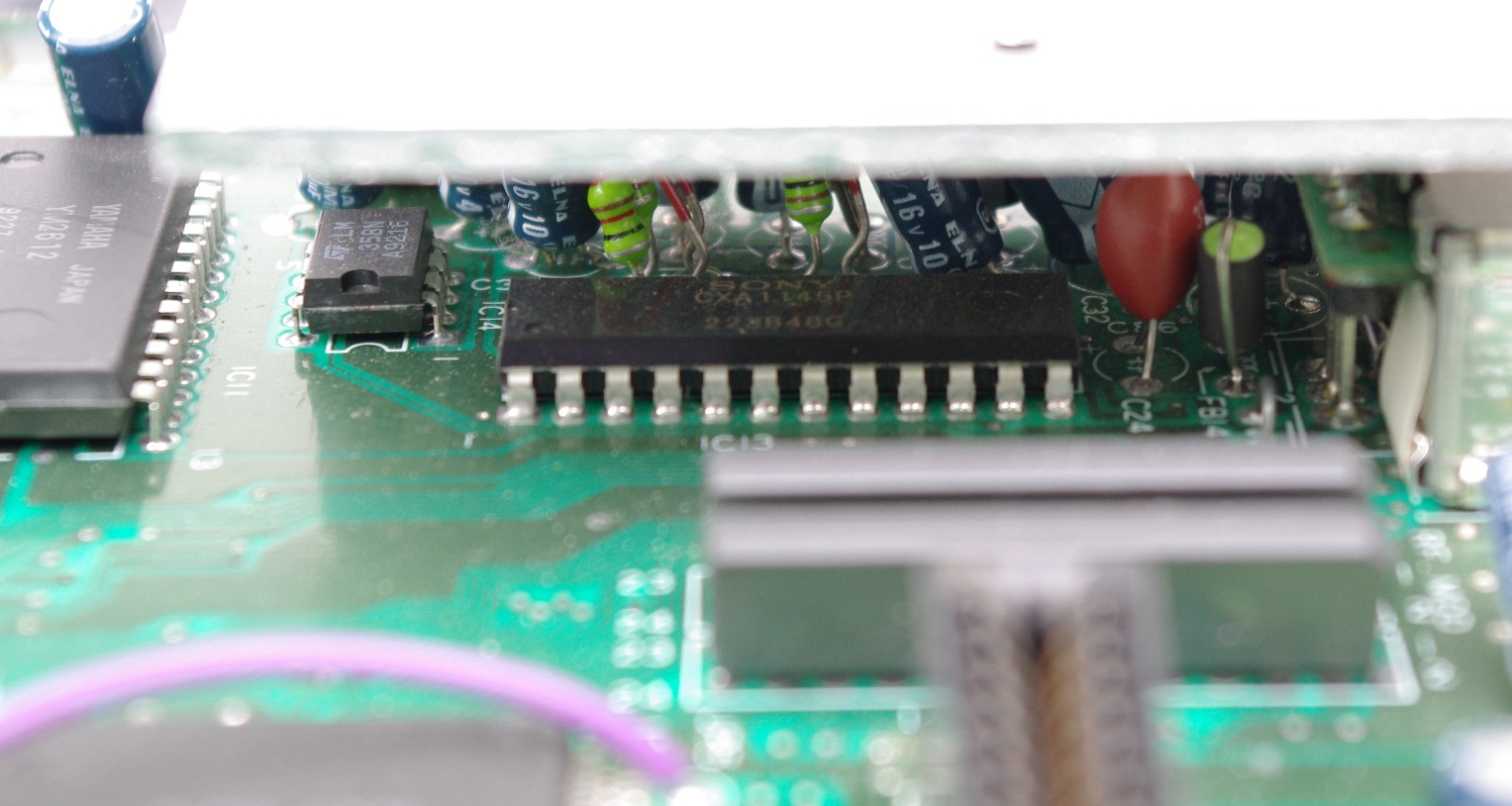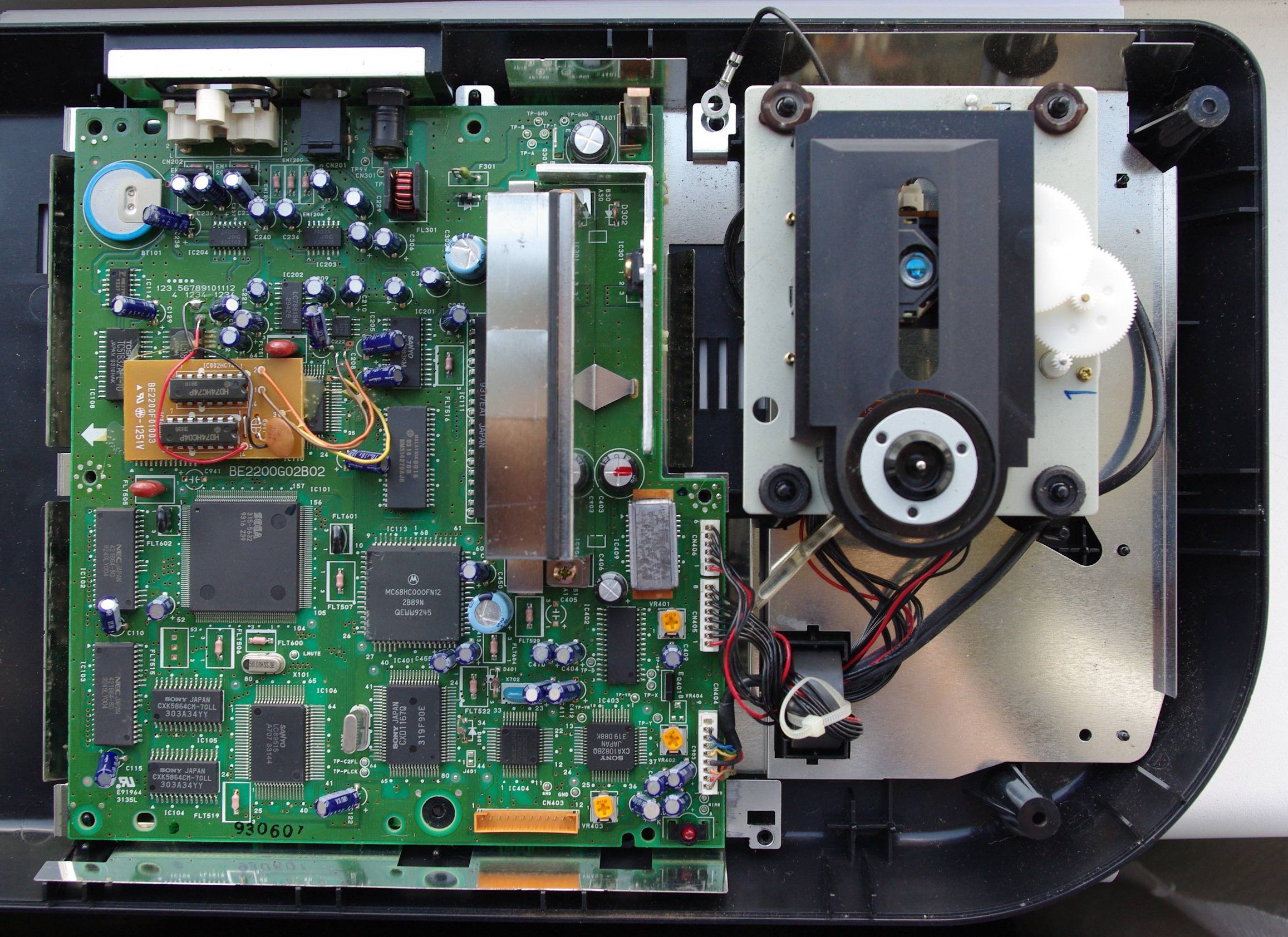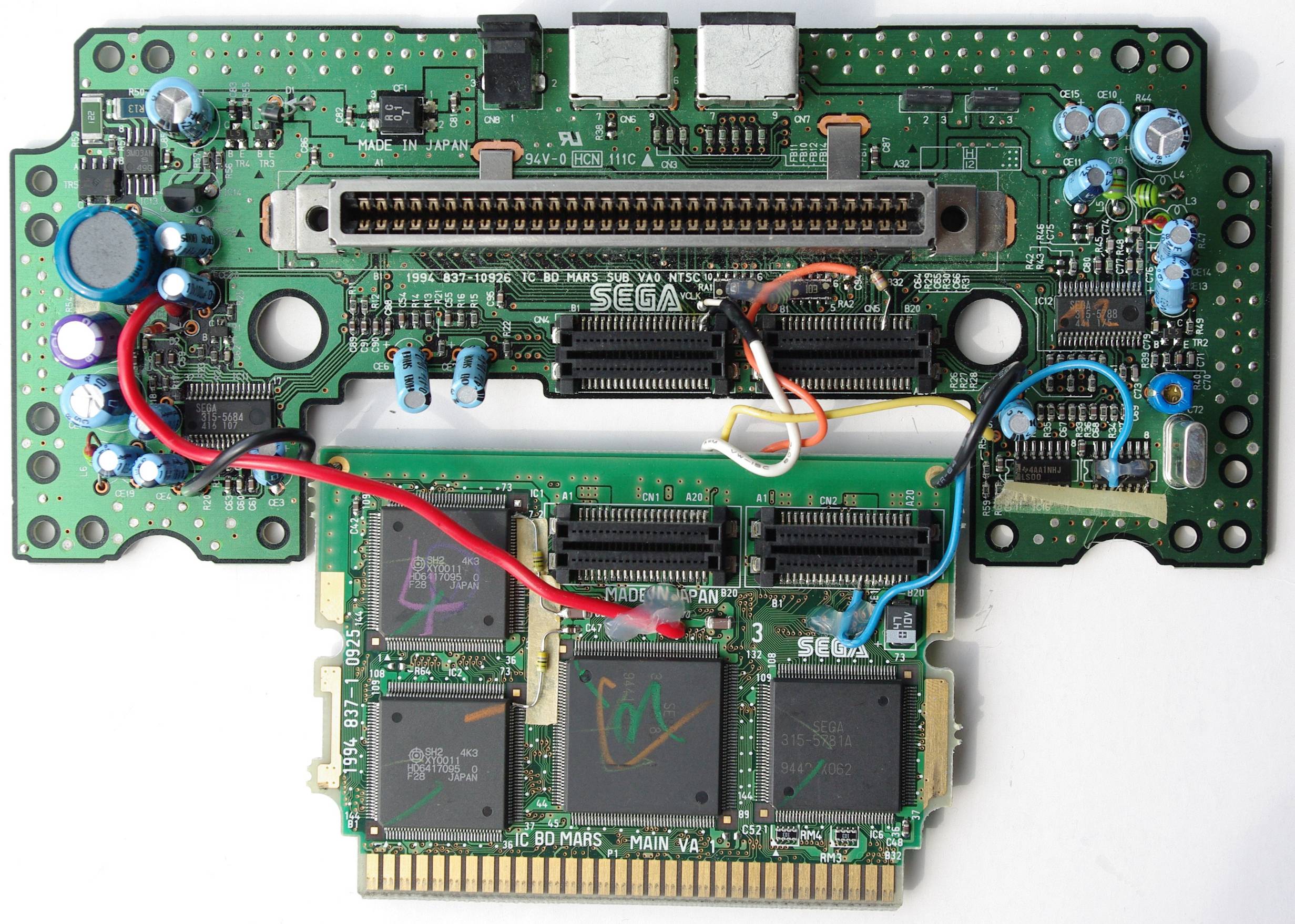 So much hardware for a system used as a CD player by most games. Has a small board attached with some inverters, probably fixes some desing bug.