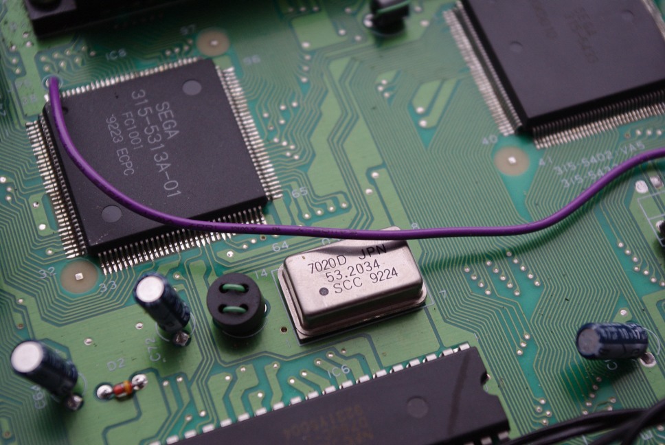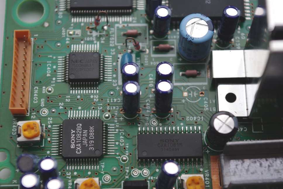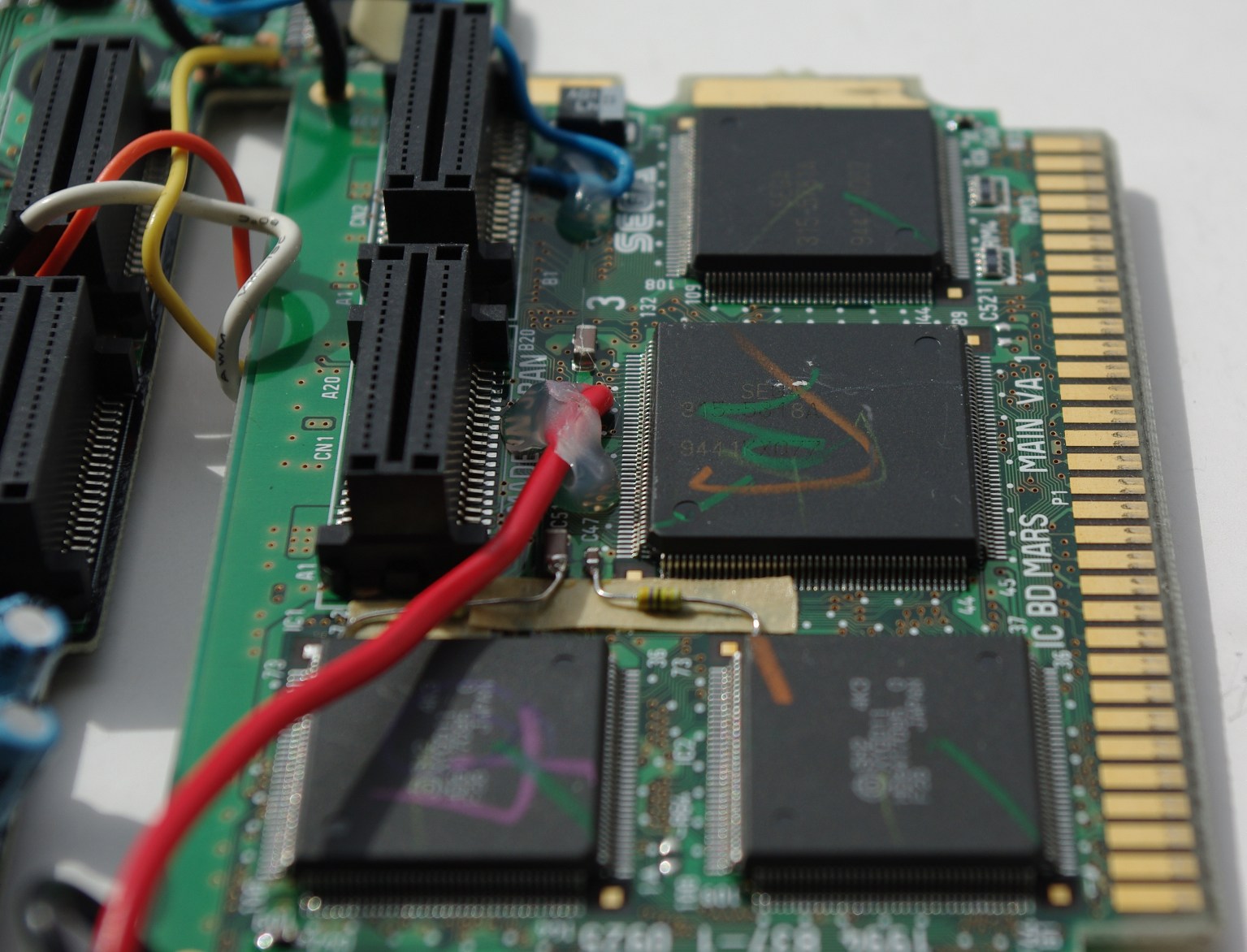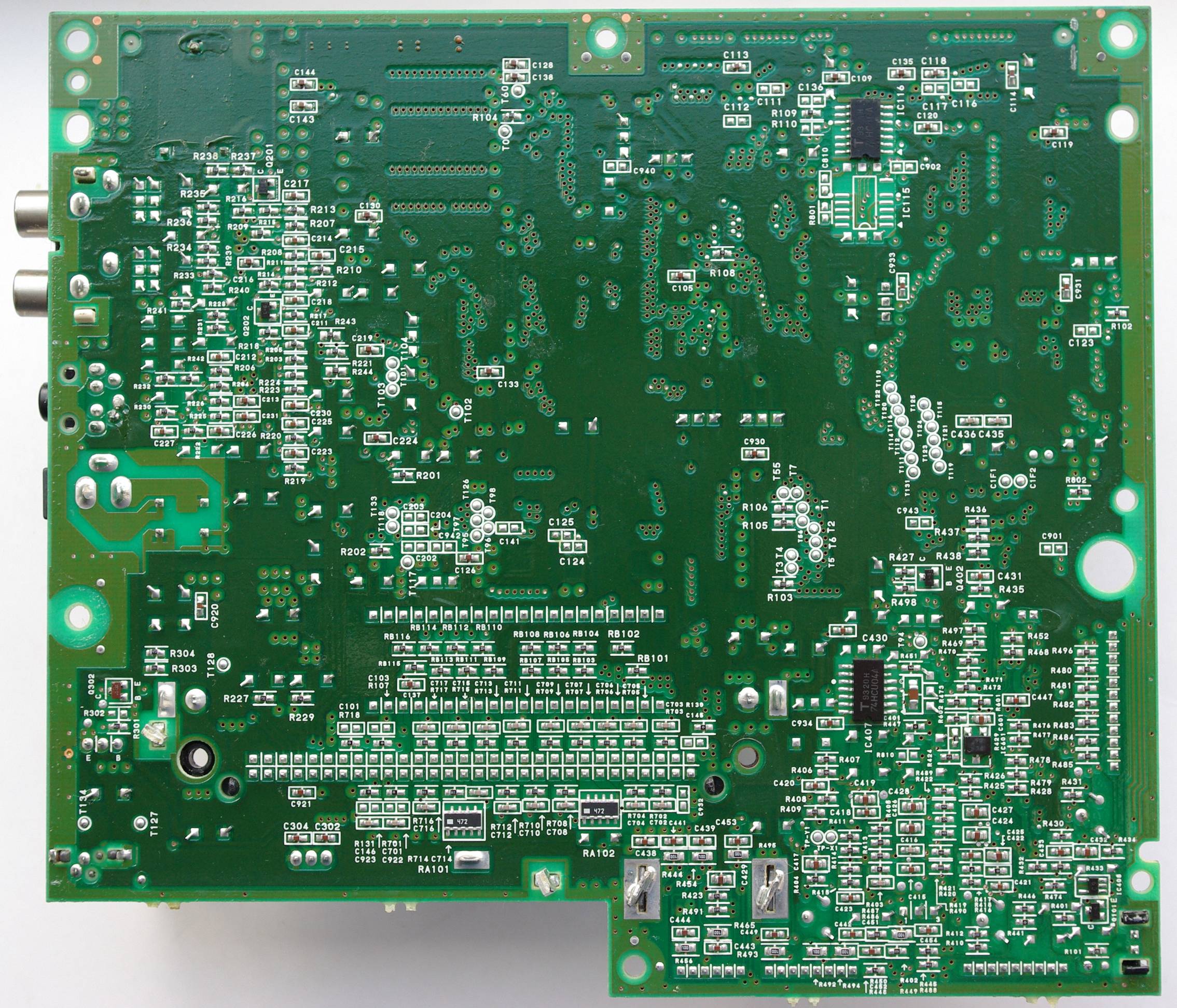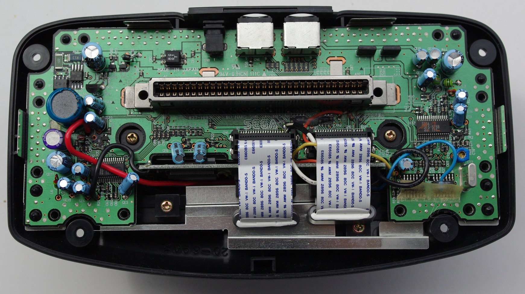 So much hardware for a system used as a CD player by most games. Has a small board attached with some inverters, probably fixes some desing bug.
