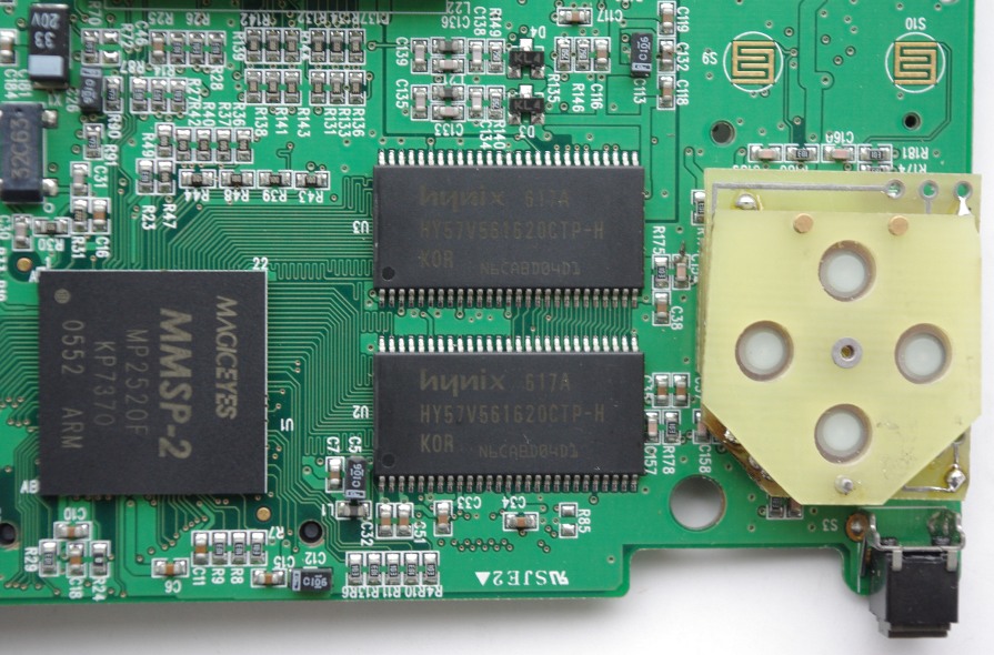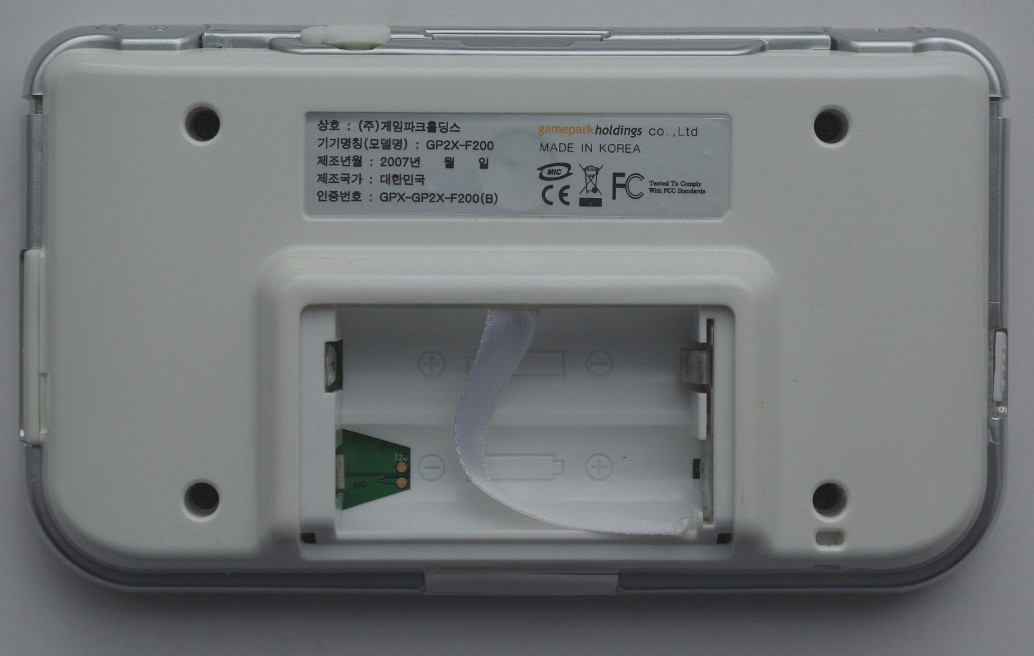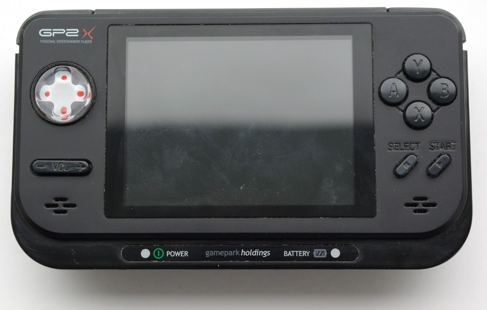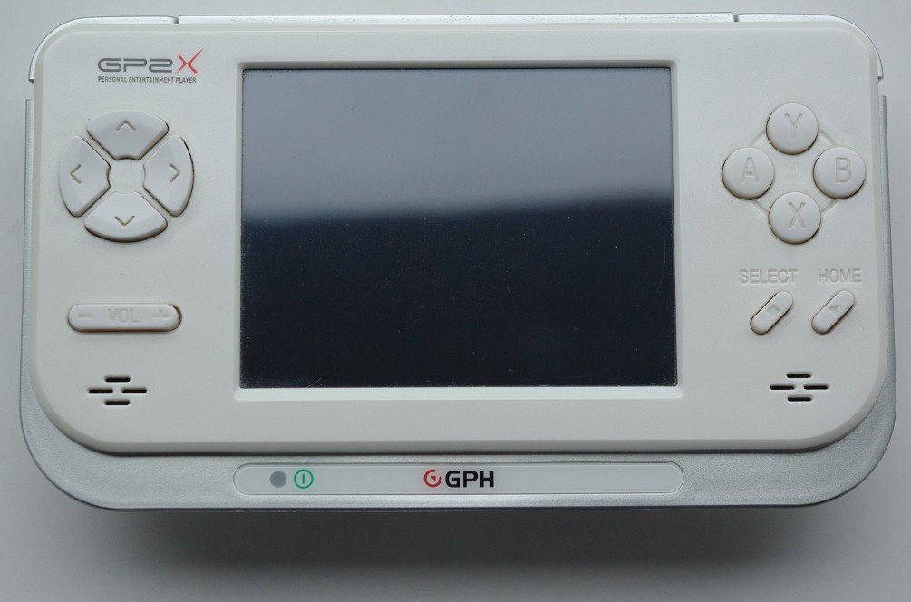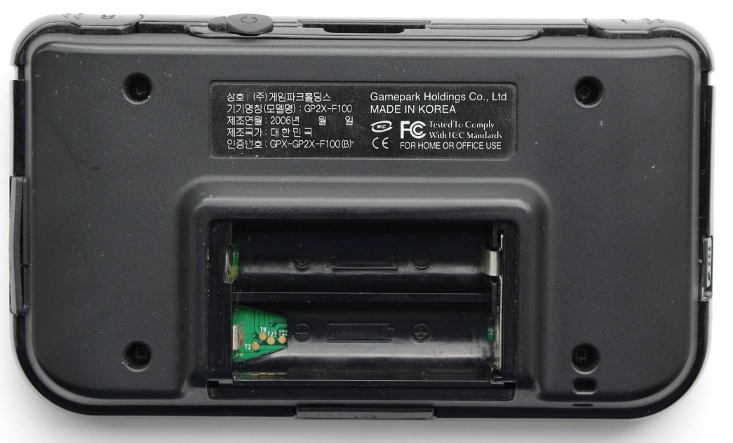 This is GPH GP2X F100 with DaveC's dpad mod applied. It also has a wire near DC connector to work around broken DC/battery switch (which is stuck in "DC connected" state, so that batteries can be used).