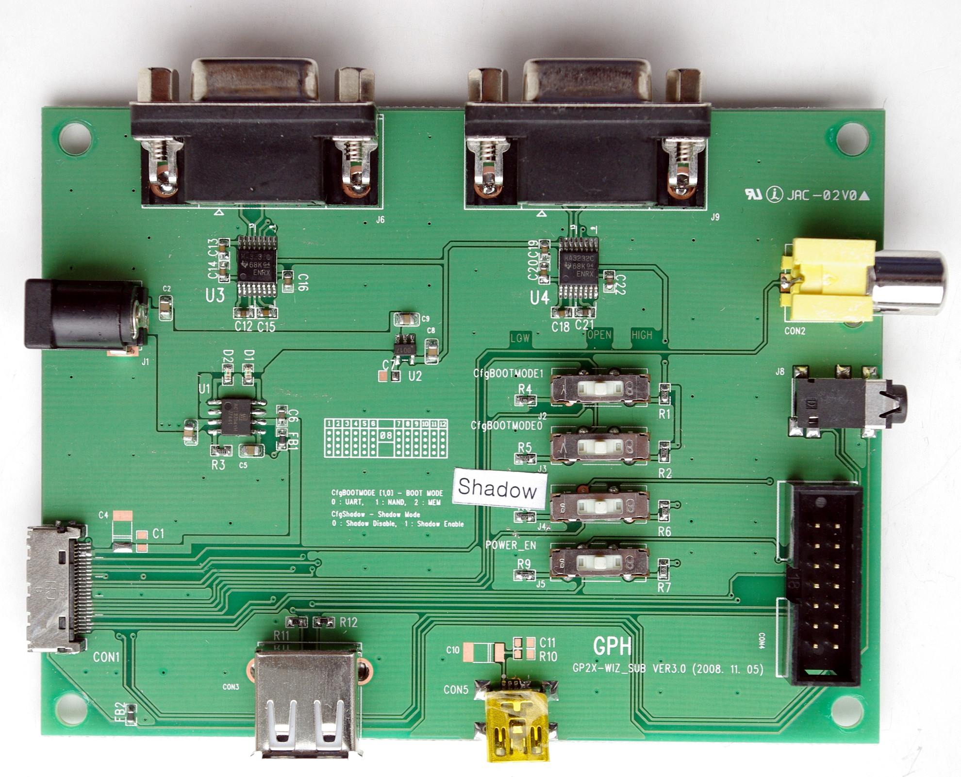 One of late GP2X Wiz prototypes with it's OLED screen and developer's board.