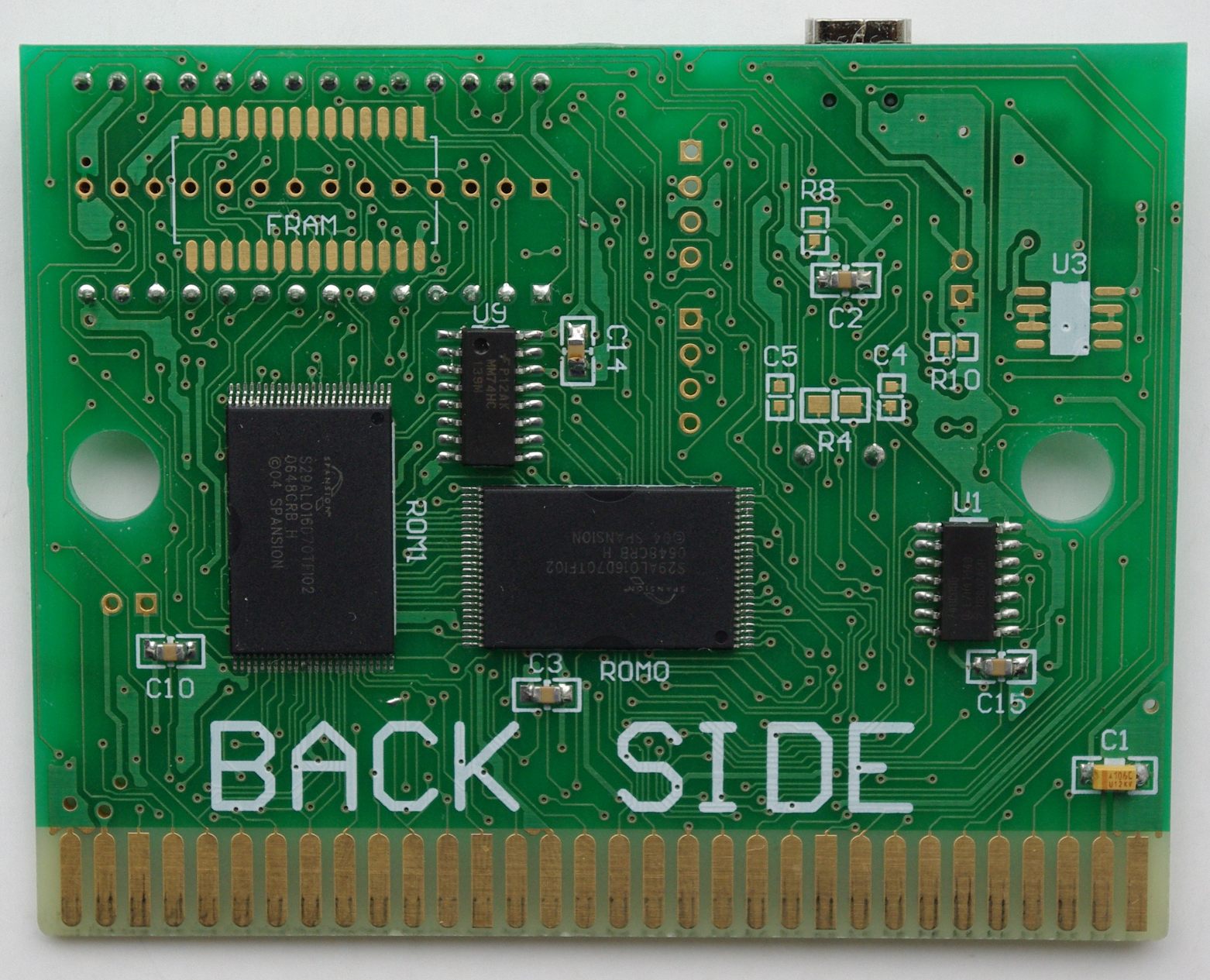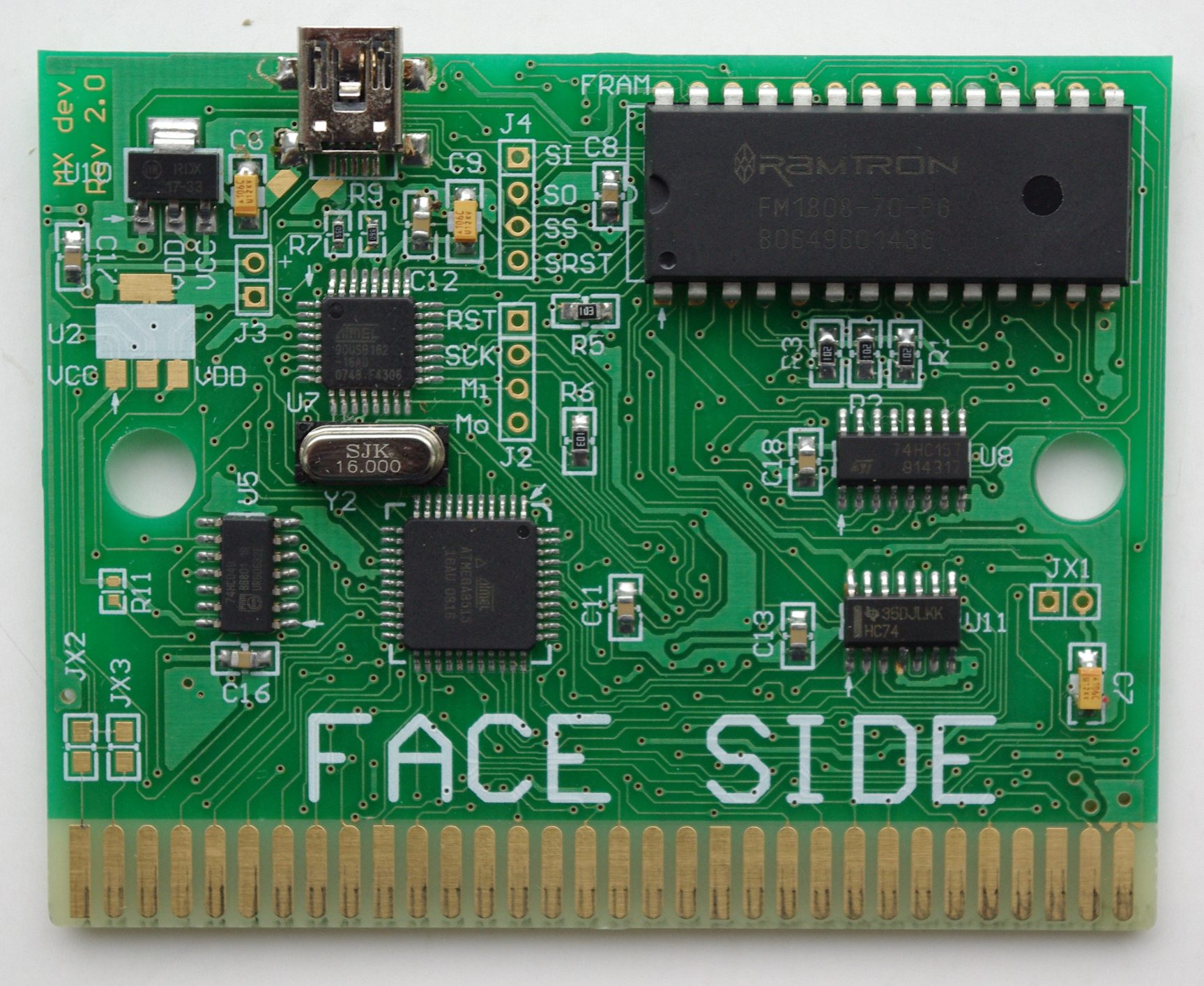 This is simple device for running things from MegaDrive's expansion port. Made of 2 8-bit 32kiB FeRAM chips, acting as universal memory in MegaDrive (runs as fast as main RAM and retains data after power off).